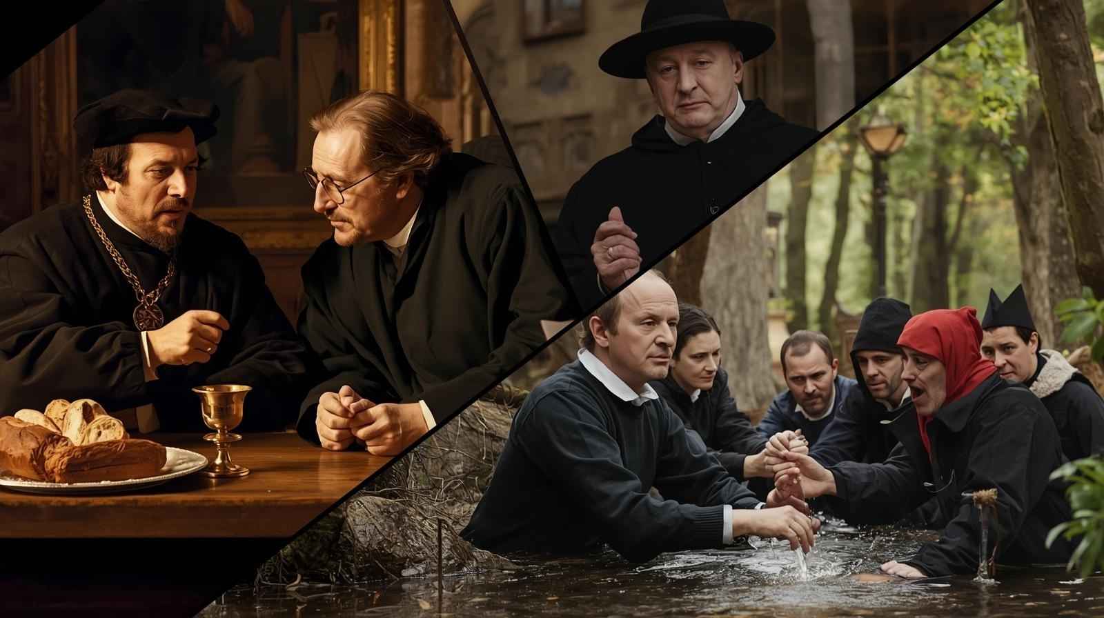 | Anabaptis | Memorialisme: Hanya lambang.10 | Dewasa (atas pengakuan iman). Menolak baptisan bayi.10 | Pemisahan Total. Gereja adalah komunitas sukarela, terpisah dari Negara.10 |